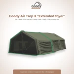 Coody Air Tarp X Extended Foyer dirancang sebagai ruang tambahan multifungsi untuk berbagai tipe tenda Coody. Dilengkapi dengan 2 jendela mesh besar dan 1 pintu mesh besar, memberikan sirkulasi udara optimal sekaligus perlindungan dari serangga. Tarp ini dapat dengan mudah disambungkan ke tenda utama menggunakan sistem zipper, menambah kenyamanan dan fleksibilitas saat berkemah.