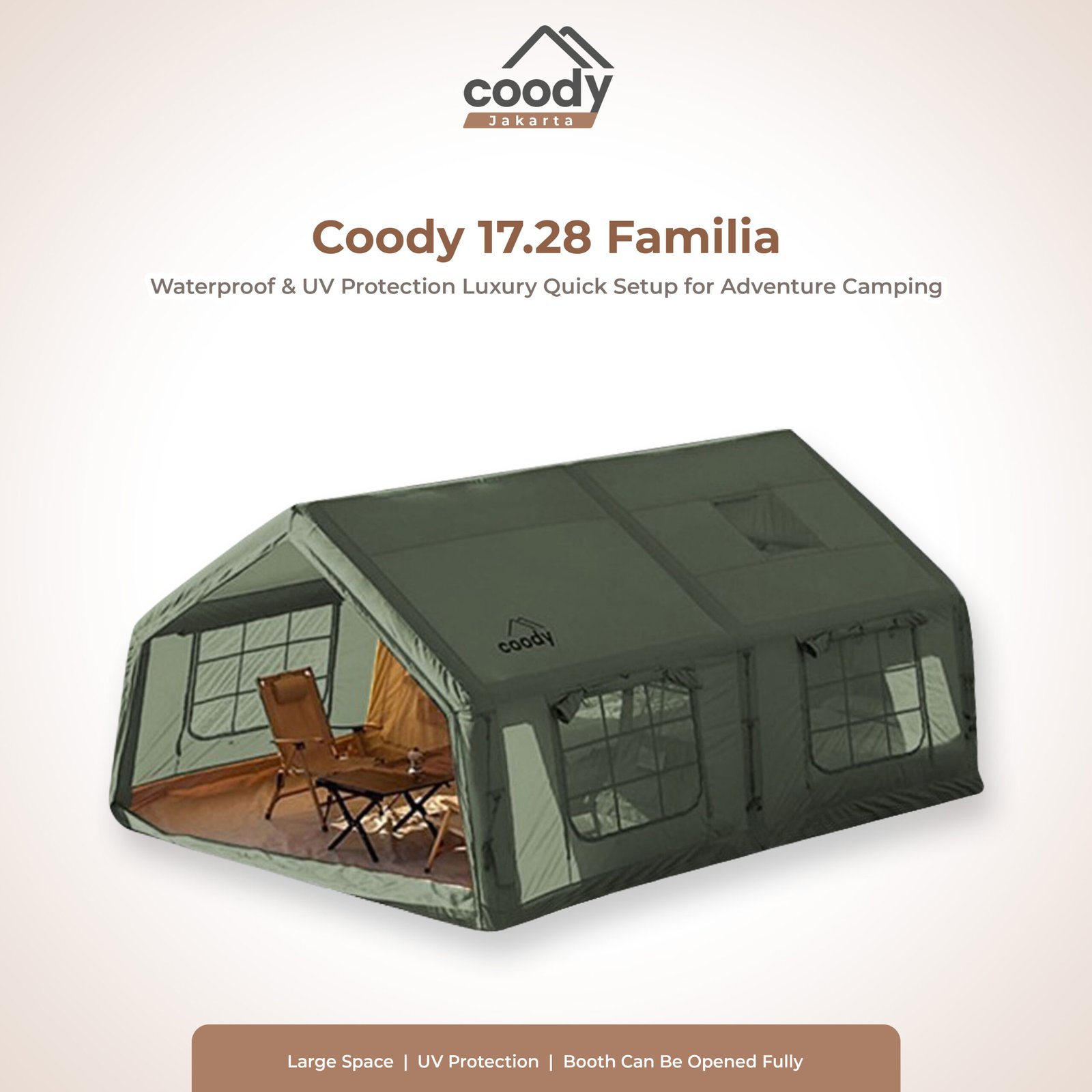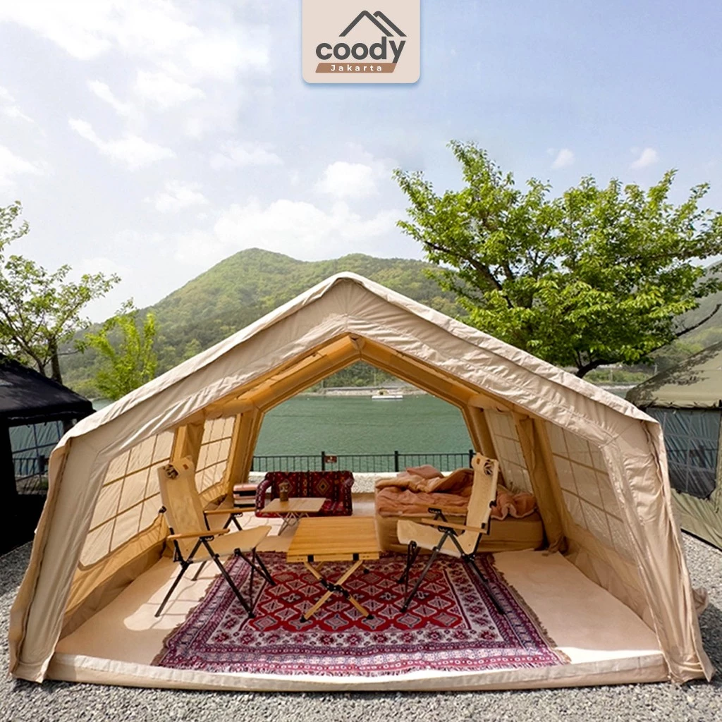 Coody Air Tent adalah tenda modern dengan sistem tiup (inflatable) yang praktis, kuat, dan tahan segala musim. Dirancang untuk pecinta alam, tenda ini memberikan kenyamanan layaknya rumah di tengah alam bebas. Dengan bahan berkualitas tinggi, Coody menghadirkan pengalaman berkemah premium yang cocok untuk camping, glamping, memancing, hiking, hingga bushcraft.