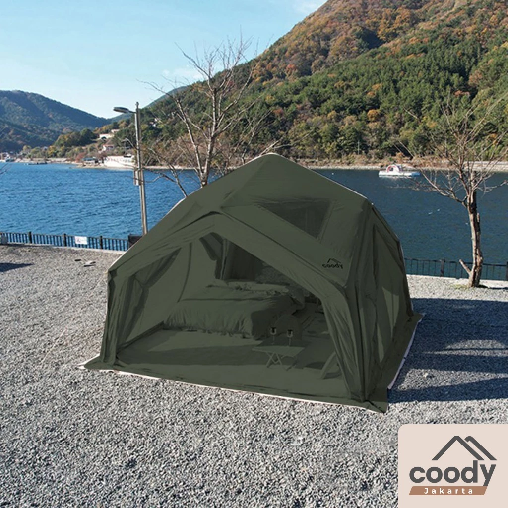 Coody Premium Air Tent Luxury Hub Station Junction 12.96 Army Green | Tenda Inflatable Praktis Waterproof UV Protection | Quick Setup Camping Glamping Fishing Hiking Bushcraft
