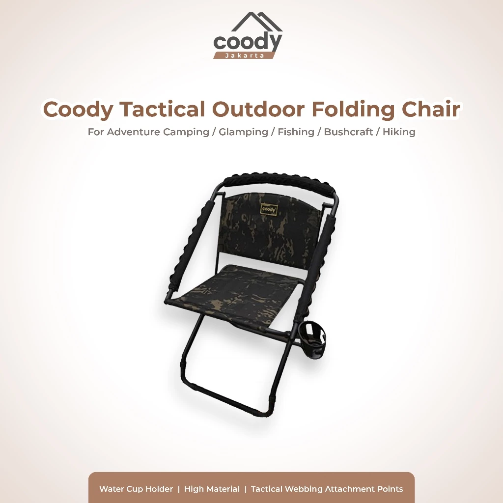 Coody Premium Tactical Outdoor Foldable Chair Camouflage Black I Kursi Lipat Oxford 900D Cloth Luxury I Praktis untuk Camping Glamping Fishing Hiking Bushcraft